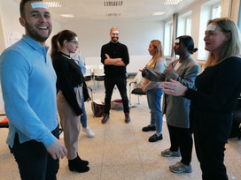 Dans le cadre de notre atelier théâtre ce mardi, nous avons fait l'exercice sur la répartie où les jeunes devaient s'écrire dans le dos. Ça a super bien fonctionné et le fait de le faire par